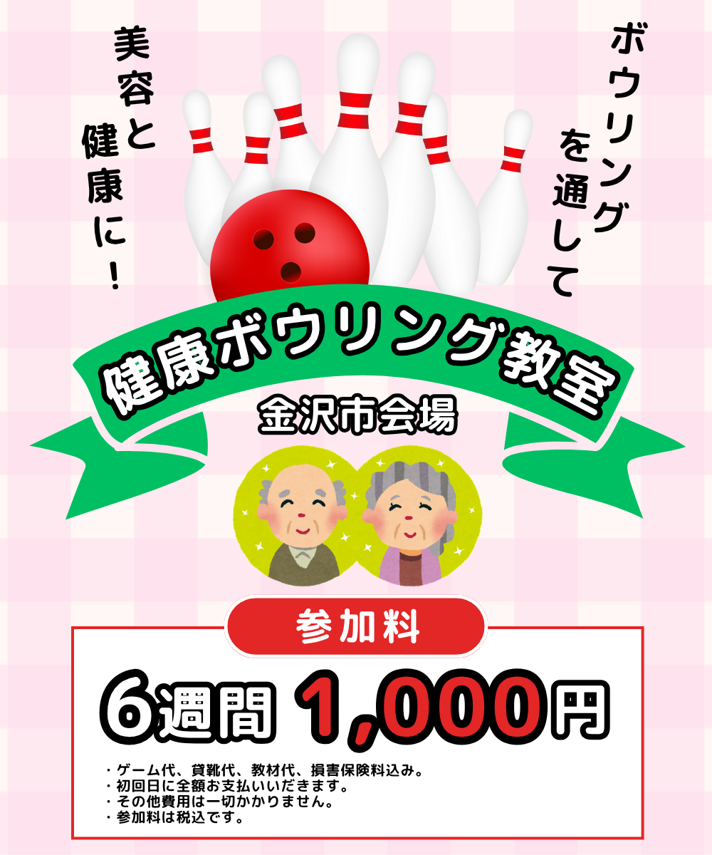 ボウリングを気軽に楽しもう! ・講師挨拶 ・健康知識 ・ボウリングの基礎知識① ・ストレッチ ・基本フォーム ・レッスン&フリー投球 |