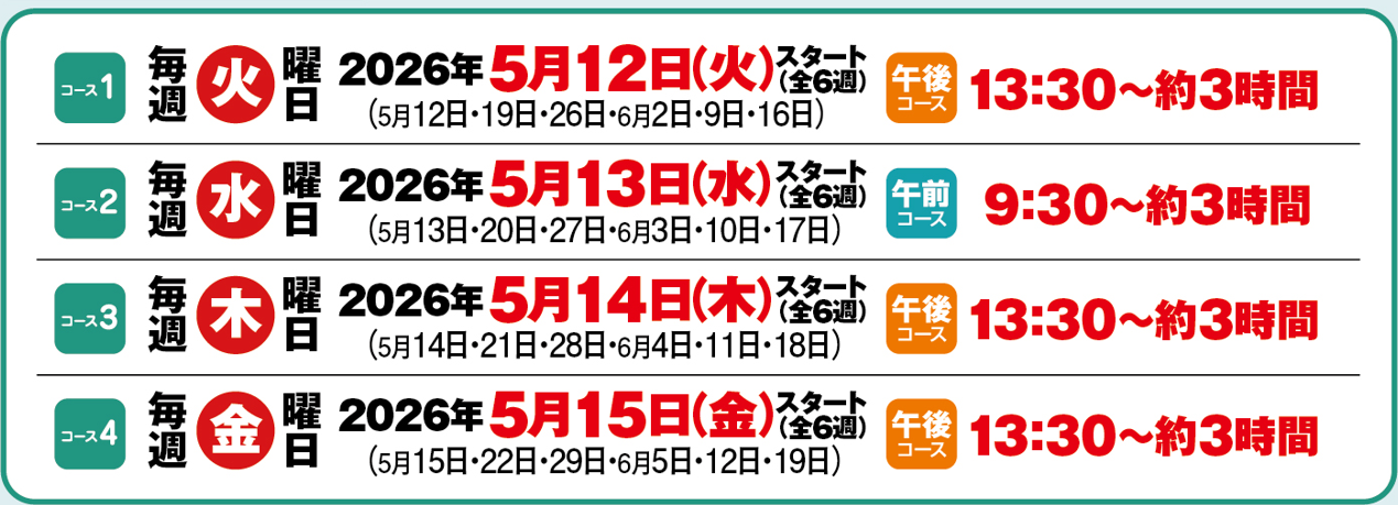 もっと楽しく、もっと健康に! ・基礎知識 ・ストレッチ ・基本フォーム ・レッスン&フリー投球 |