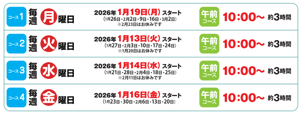 ボウリングの楽しみ方 ・健康知識 ・ストライクの狙い方 ・記念撮影 ・ストレッチ ・基本フォーム ・レッスン&フリー投球 |